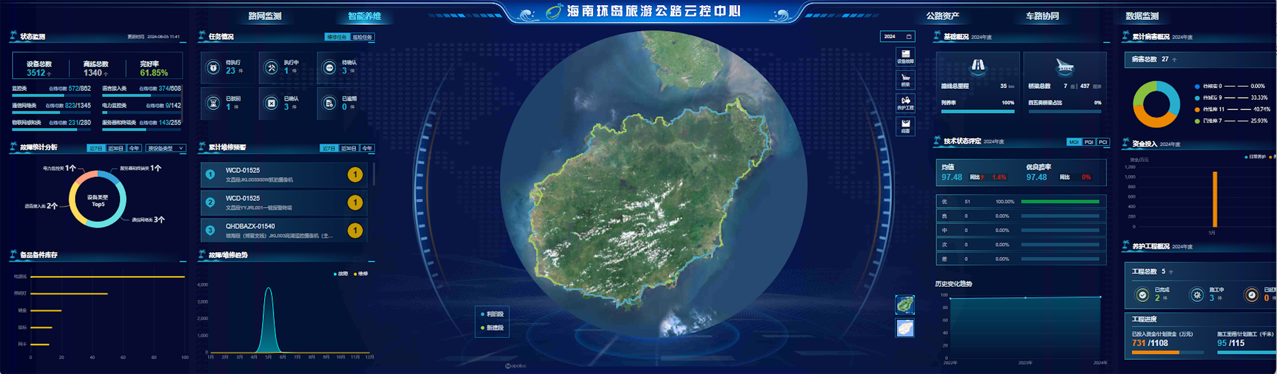 通过融合公路管养、交通流量、沿线设备、气象及重点车辆等多源数据,海南环岛旅游公路云控中心构建了高质量的智慧公路数据底座,不仅赋能环岛旅游公路现有的管理决策与公共服务需求,还能为未来新的业务需求提供数据智能引擎。